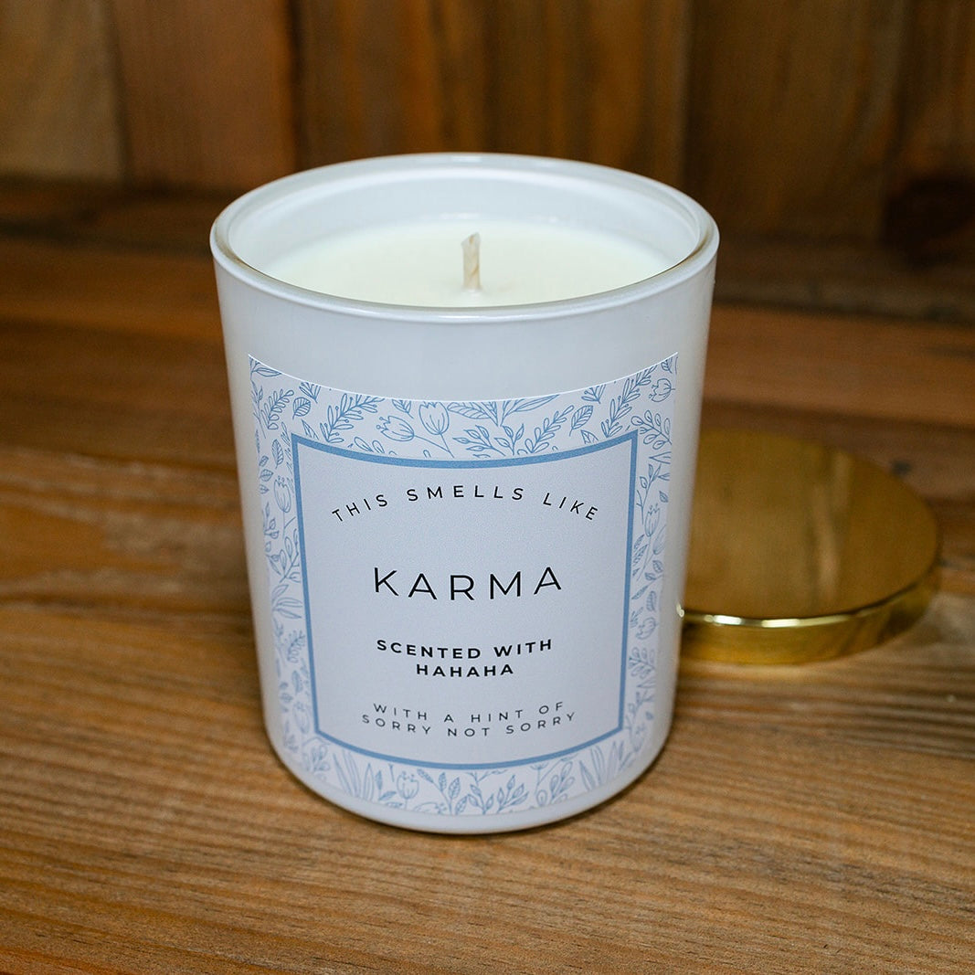 With its scent of cosmic justice (a blend of serenity and serendipity, with a hint of 'I told you so'), 'Karma' is your daily dose of juju in a jar.