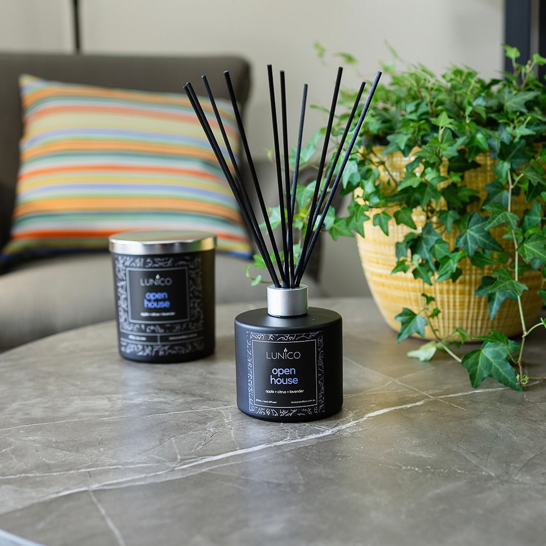 Our Open House reed diffuser, with its fresh linen fragrance, will have anyone convinced you just finished your spring cleaning.
